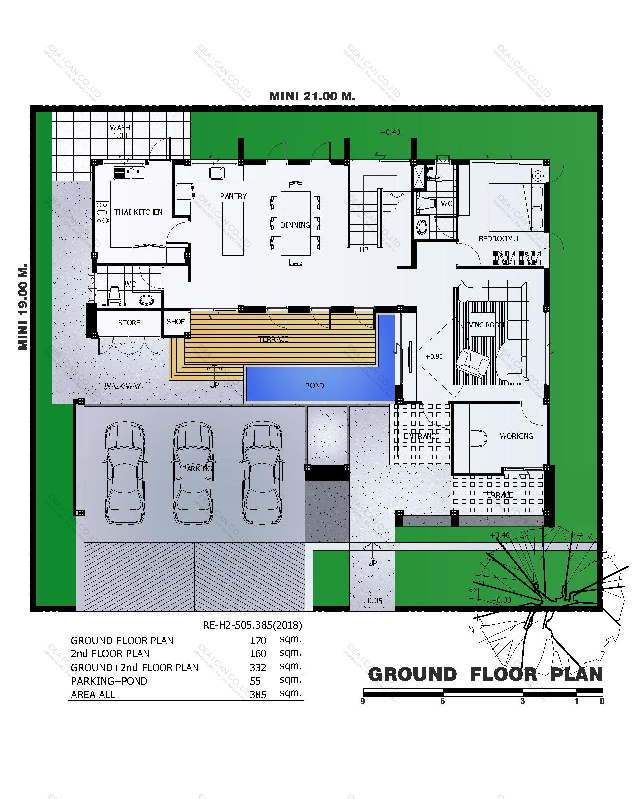 พื้นที่ใช้สอย | : 385 ตร.ม. | ขนาดที่ดิน | : 99.75 ตร.ว. |