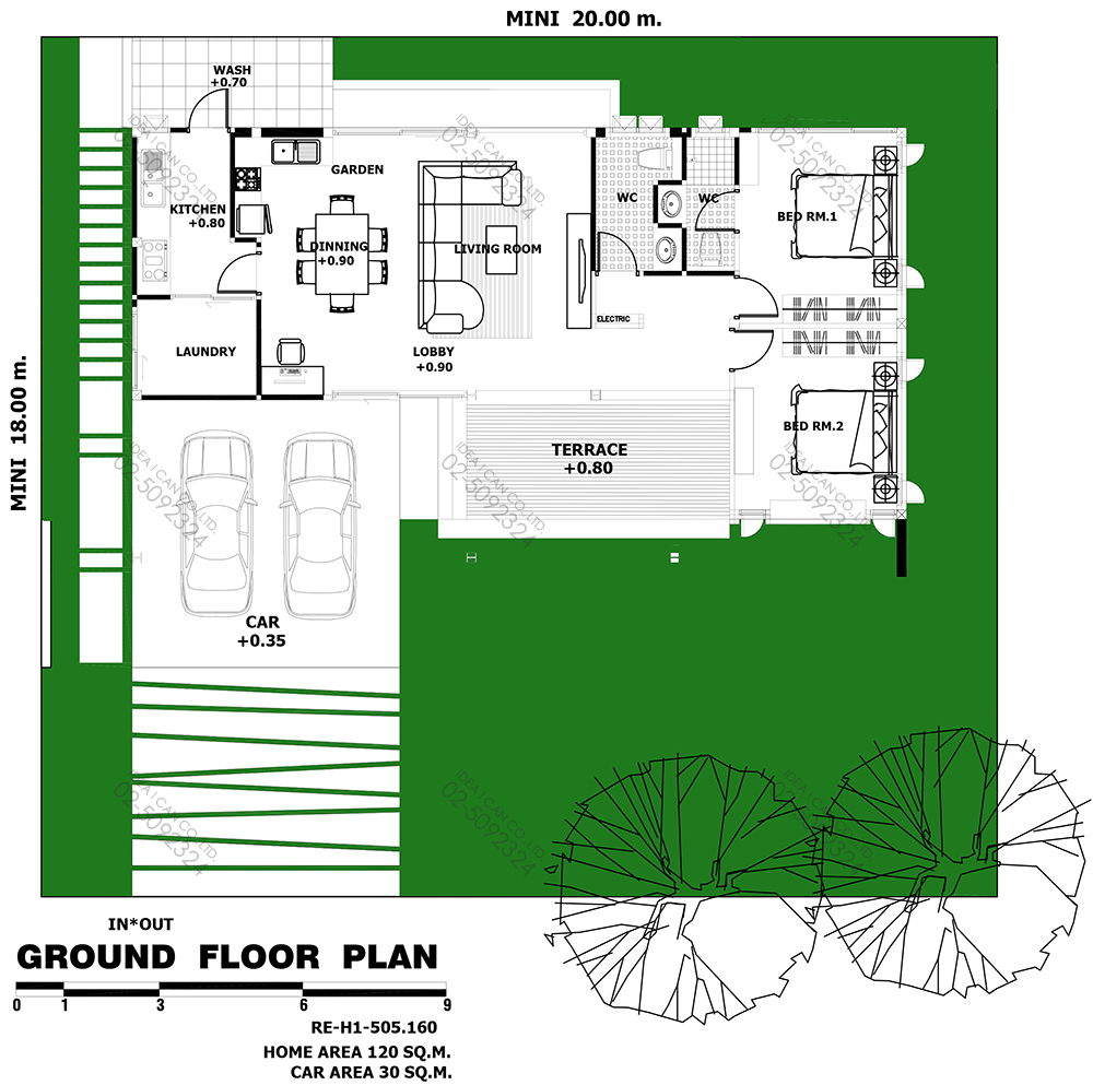 รีวิว แบบบ้านชั้นเดียว 2 ห้อง 2 ห้อง RE-H1-505.160