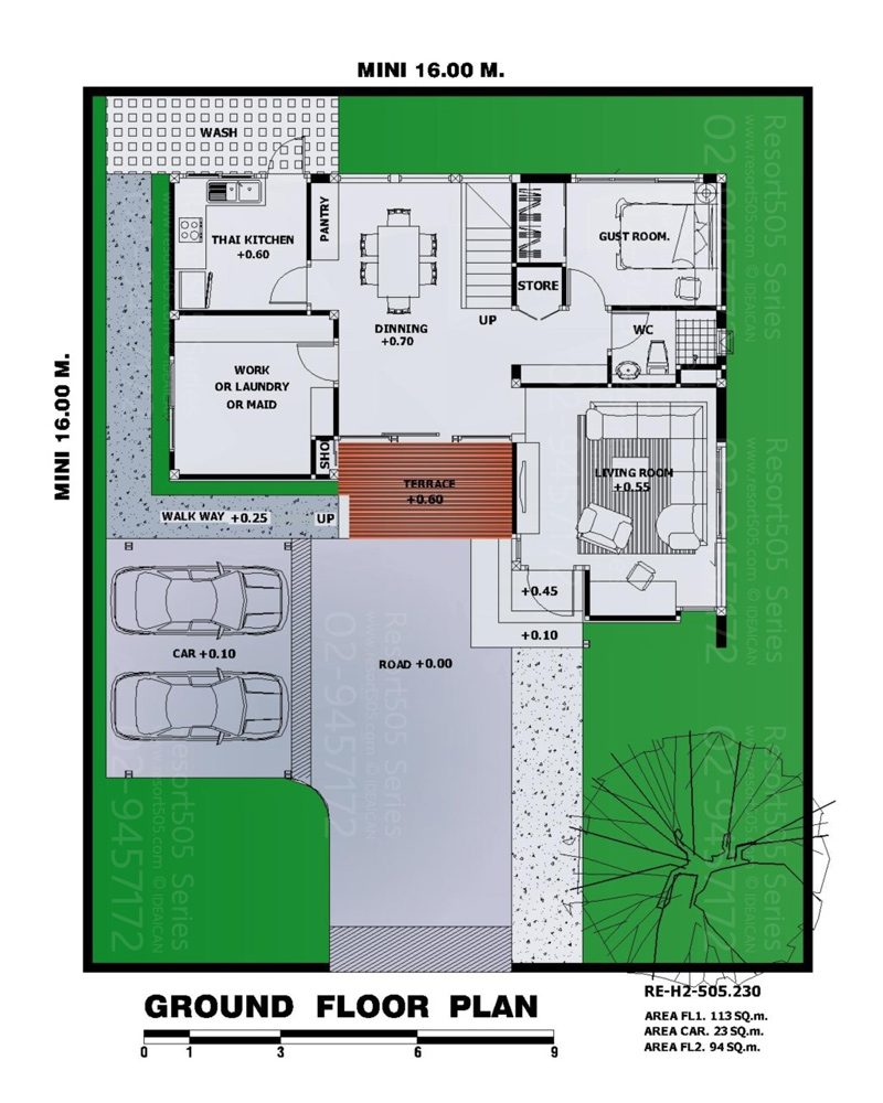 รีวิว แบบบ้านสองชั้น 4 ห้อง 3 ห้อง RE-H2-505.230